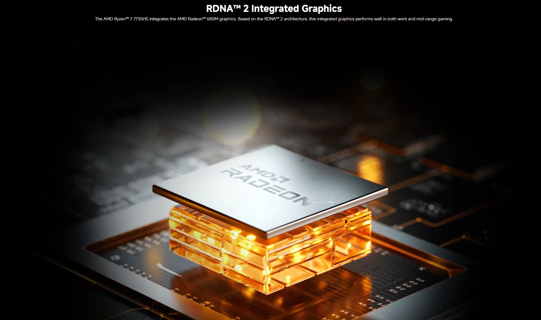 Hiệu suất CPU ấn tượng: Bộ vi xử lý AMD Ryzen™ 7 7735HS mang lại hiệu suất tuyệt vời cho các tác vụ hàng ngày, đa nhiệm mượt mà, và xử lý tốt các ứng dụng năng suất.