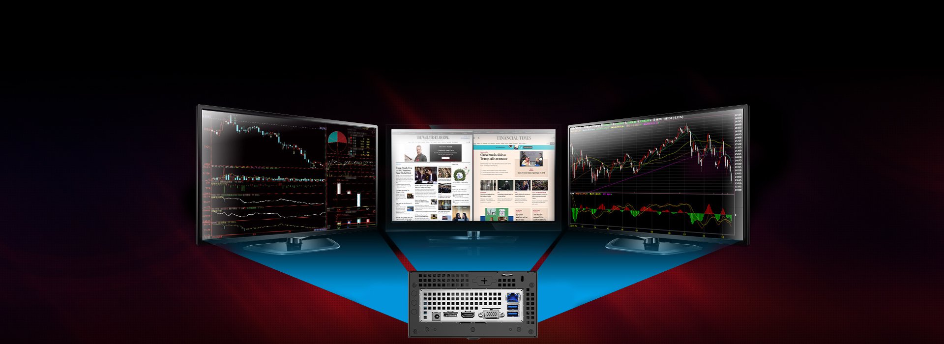 DeskMini X600 hỗ trợ xuất hình ra ba màn hình cùng lúc thông qua các cổng HDMI, DisplayPort và D-Sub. Khả năng này giúp tăng cường năng suất làm việc bằng cách mở rộng không gian hiển thị, cho phép bạn đa nhiệm hiệu quả hơn. Đối với game thủ, việc thiết lập đa màn hình mang lại trải nghiệm chơi game nhập vai và sống động hơn.