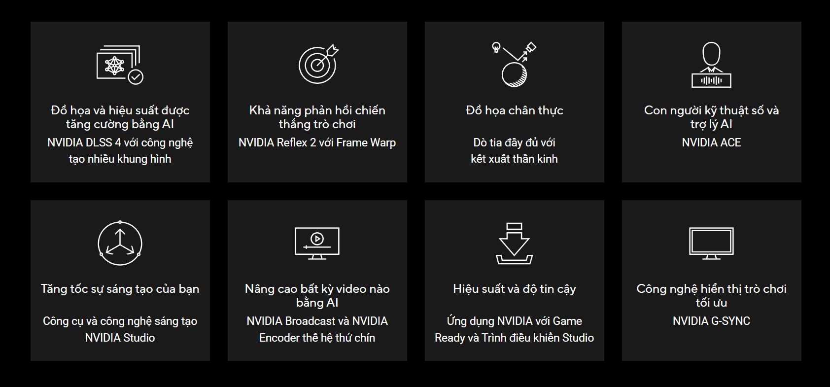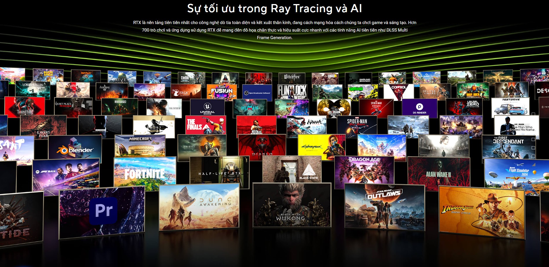 Ray Tracing Cores (Gen 5): Tăng tốc độ dò tia, mang lại ánh sáng, đổ bóng và phản xạ chân thực hơn, đồng thời giảm thiểu gánh nặng hiệu suất.