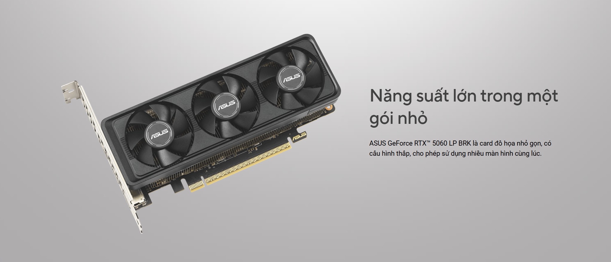 | Tên Đầy Đủ | ASUS GeForce RTX™ 5060 LP BRK 8GB GDDR7 OC Edition |