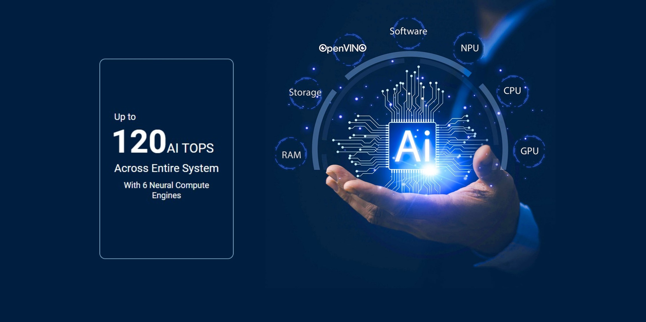 Một trong những điểm nổi bật của ASUS NUC 14 PRO AI là khả năng xử lý AI với tốc độ lên đến 48 NPU TOPS, gấp ba lần hiệu suất AI so với các thế hệ trước, nhưng tiêu thụ ít năng lượng hơn. Công nghệ Intel XMX AI engine cung cấp khả năng xử lý AI gấp 16 lần cho các tác vụ như nhận dạng hình ảnh, xử lý ngôn ngữ tự nhiên, hay các công cụ hỗ trợ sáng tạo. Hỗ trợ OpenVINO AI frameworks giúp giảm độ trễ và tăng thông lượng, khiến ASUS NUC 14 PRO AI trở thành lựa chọn lý tưởng cho các nhà phát triển AI và những người đam mê công nghệ.