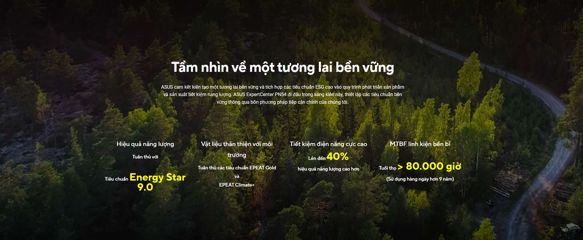 ASUS cam kết xây dựng tương lai bền vững với ExpertCenter PN54. Sản phẩm sử dụng vật liệu thân thiện với môi trường và đạt tiêu chuẩn EPEAT Climate+, đồng thời cung cấp hiệu suất năng lượng vượt trội với mức tiết kiệm năng lượng lên đến 40%. Quy trình sản xuất của ASUS tuân thủ các tiêu chuẩn ESG cao, đảm bảo giảm thiểu tác động đến môi trường mà vẫn duy trì hiệu suất tối ưu.