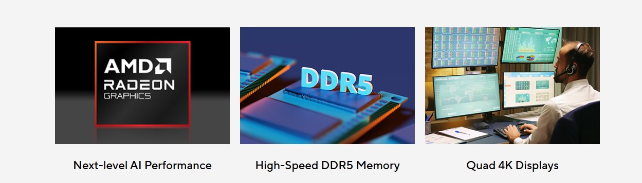 Hiển Thị Đa Màn Hình: Kết nối đồng thời bốn màn hình 4K, lý tưởng cho các ứng dụng bán lẻ, văn phòng, hoặc giải trí tại gia.