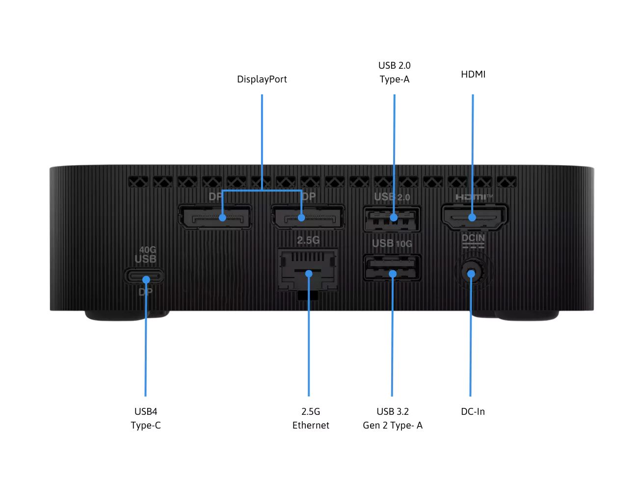 | Cổng IO | 1x USB 4 1x USB 3.2 Gen2 Type A (10G) 1x USB 2.0 Type A (5G) 1x HDMI2.1(FRL6) 2x DisplayPort 1.4 1x 2.5G RJ45 LAN 1x DC in |