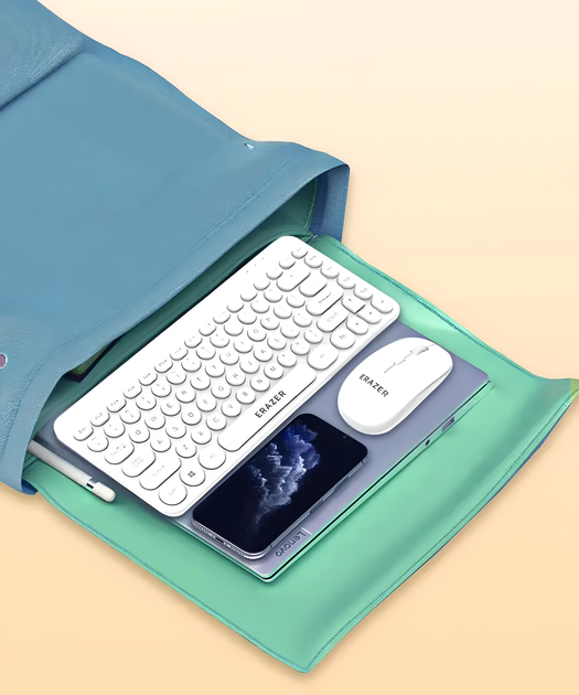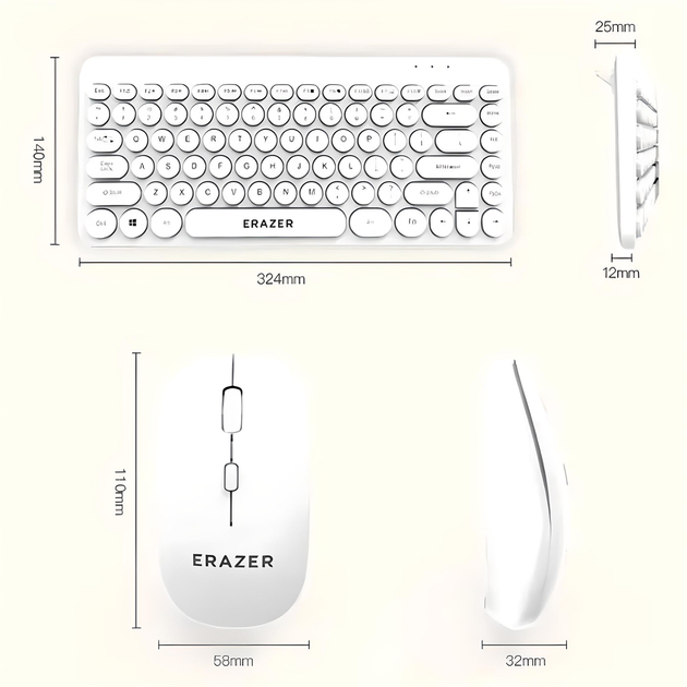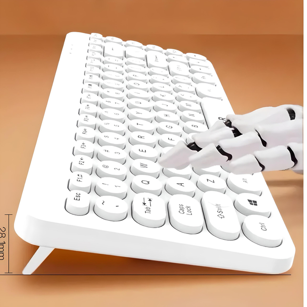 Bàn phím có thiết kế mỏng nhẹ với các phím liền khối, mang lại cảm giác gõ êm ái và dễ dàng vệ sinh. Chuột đi kèm được thiết kế công thái học, vừa vặn với tay người dùng, giúp giảm mỏi khi sử dụng trong thời gian dài. Màu trắng tinh tế của bộ sản phẩm tạo nên vẻ ngoài hiện đại, phù hợp với các không gian làm việc chuyên nghiệp.