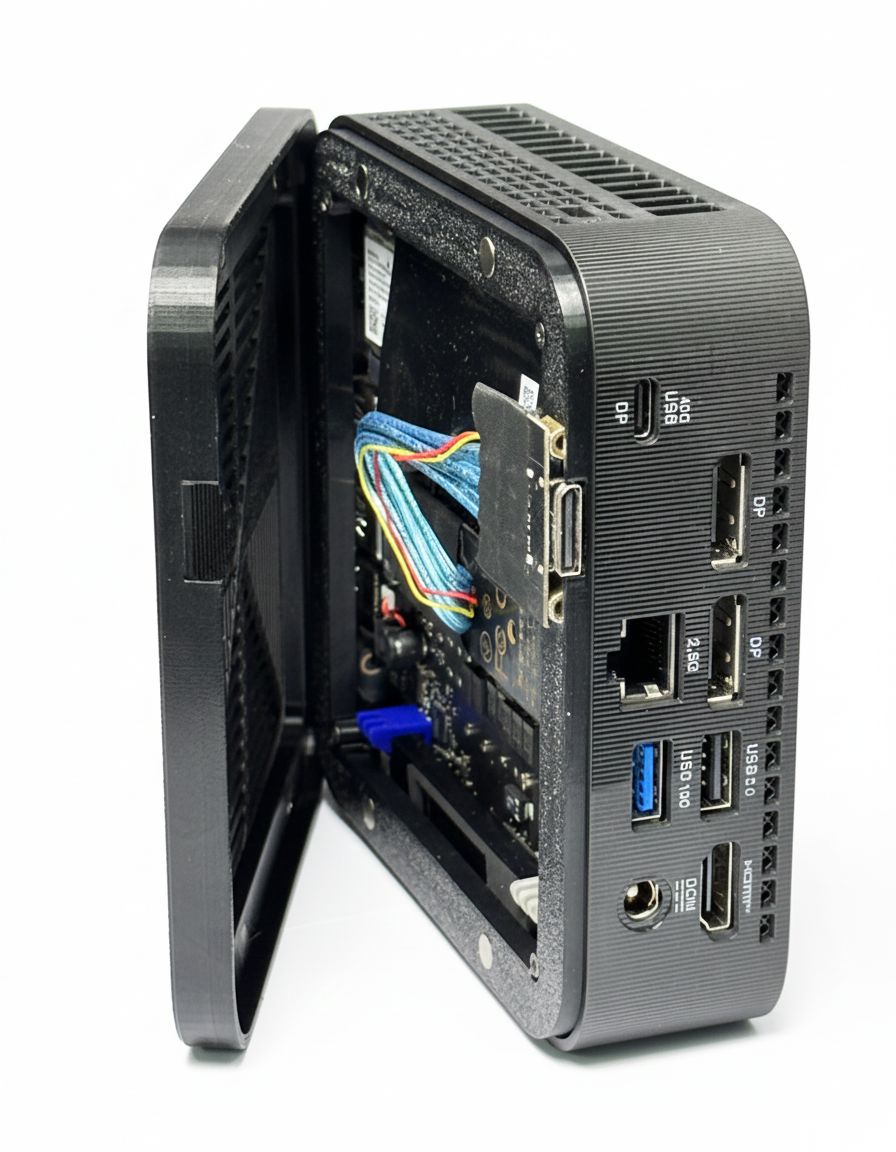 Lắp đặt Module M.2: Bạn chỉ cần mở nắp dưới của NUC, cắm module chuyển đổi vào khe M.2 PCIe trống. Module này được chế tạo từ bảng mạch PCB chất lượng cao, đảm bảo tín hiệu ổn định và không gây đoản mạch.