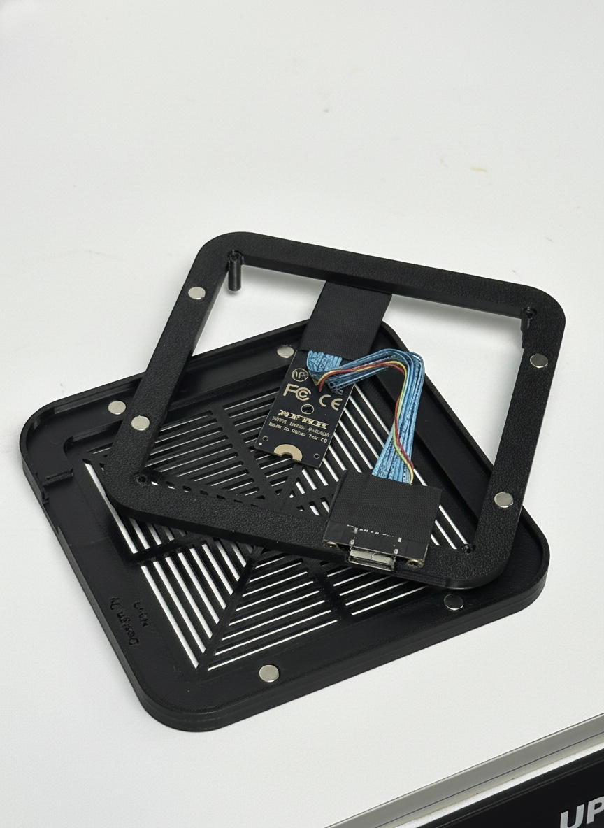 Thiết kế chuẩn khít: Bộ Kit bao gồm bo mạch chuyển đổi (adapter) lắp vừa vặn vào khe cắm M.2 PCIe bên trong ASUS NUC AI 350. Phần cáp kết nối được đưa ra ngoài một cách tinh tế, không làm ảnh hưởng đến thẩm mỹ và khả năng tản nhiệt của máy.