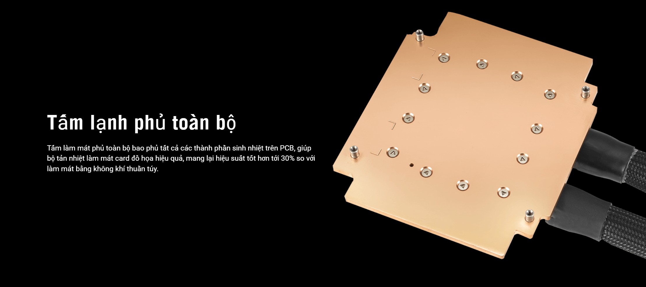 Thiết Kế 2.5 Slot: Mặc dù mang trong mình sức mạnh vô song, phần card chính chỉ chiếm 2.5 Slot, tương đối gọn gàng so với các phiên bản tản nhiệt khí khổng lồ, giúp tối ưu hóa không gian bên trong thùng máy.