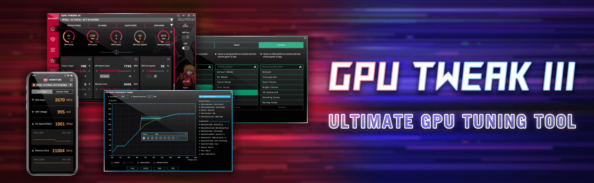 ASUS cung cấp tiện ích GPU Tweak III độc quyền, cho phép người dùng kiểm soát và tối ưu hóa hiệu suất card một cách dễ dàng: