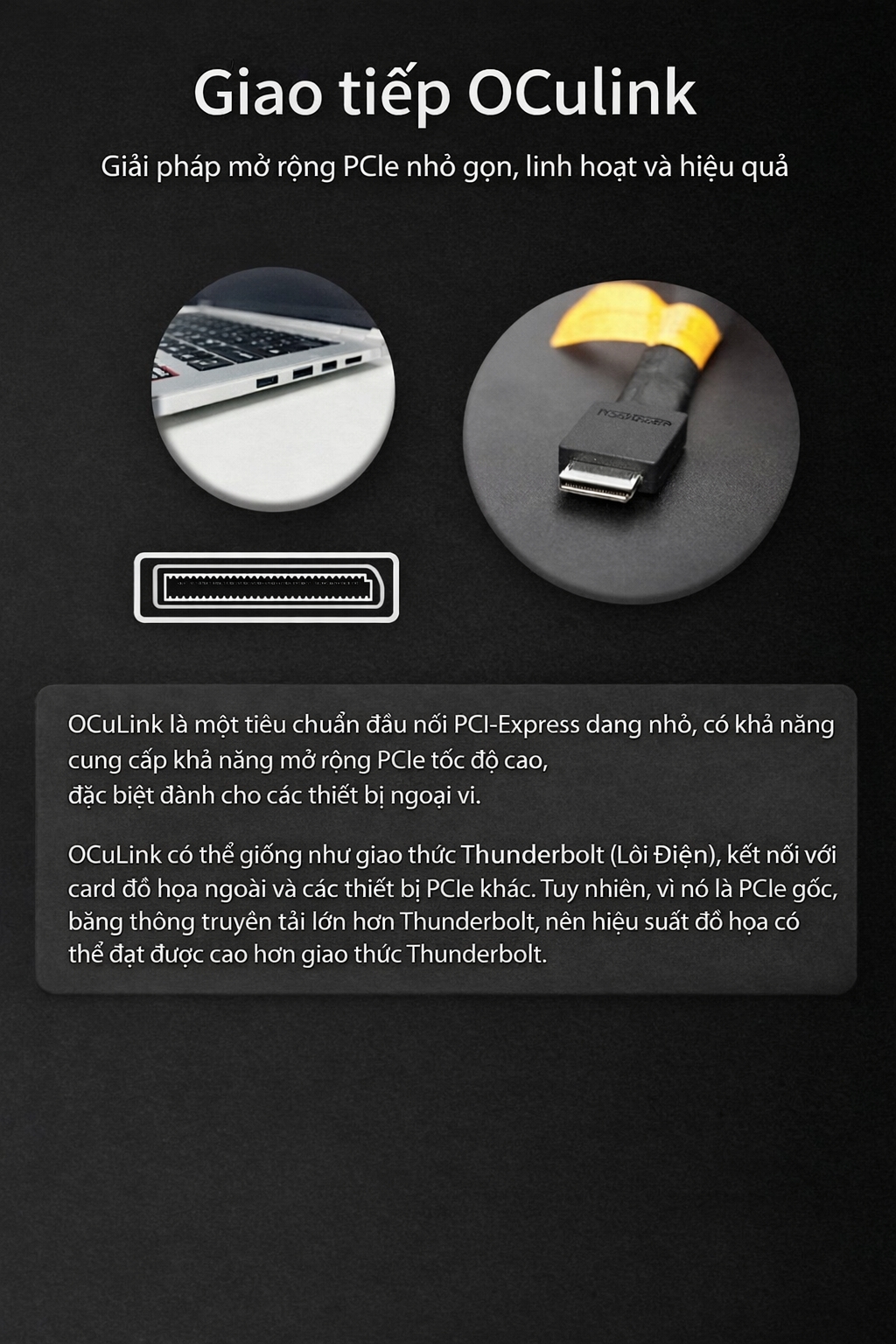 ‣ Loại kết nối Oculink hoặc Thunderbolt