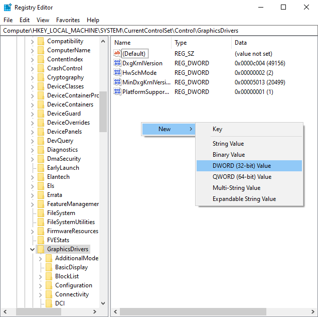 - Truy cập theo đường dẫn: HKEY_LOCAL_MACHINE\System\CurrentControlSet\Control\GraphicsDrivers