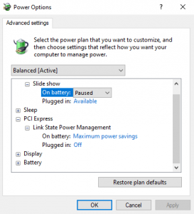 - Mở Control Panel → Power Options → Change plan settings → Advanced power settings.