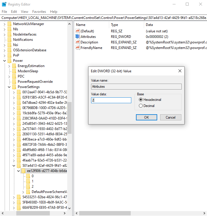 - Truy cập theo đường dẫn: HKEY_LOCAL_MACHINE\SYSTEM\CurrentControlSet\Control\Power\PowerSettings\501a4d13-42af-4429-9fd1-a8218c268e20\ee12f906-d277-404b-b6da-e5fa1a576df5