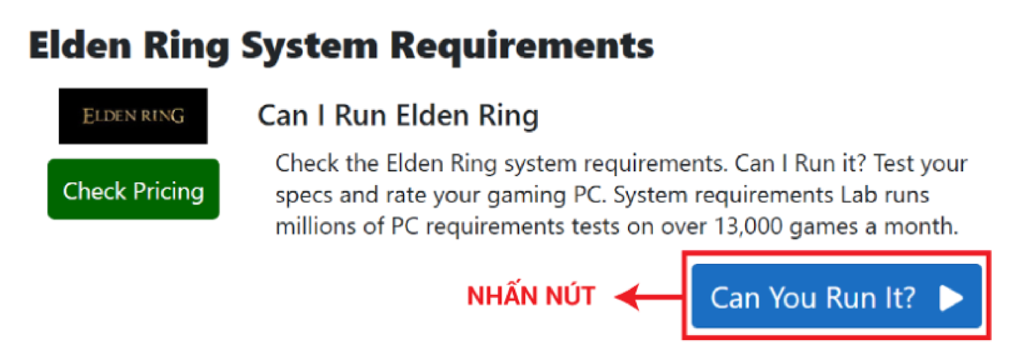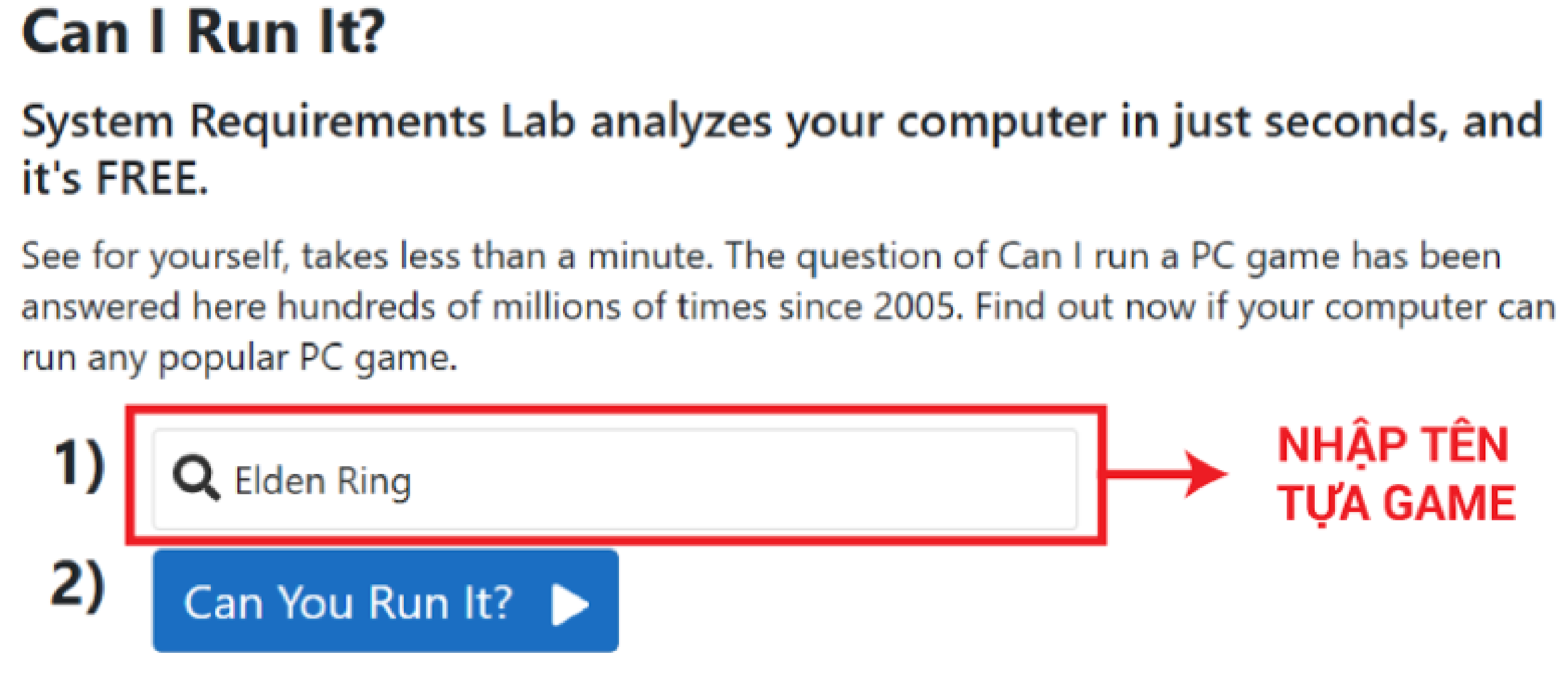 Nhấn nút "Can You Run It" → công cụ tự động quét phần cứng máy bạn.