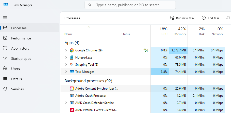 - Nhấn Ctrl + Shift + ESC để mở Task Manager.