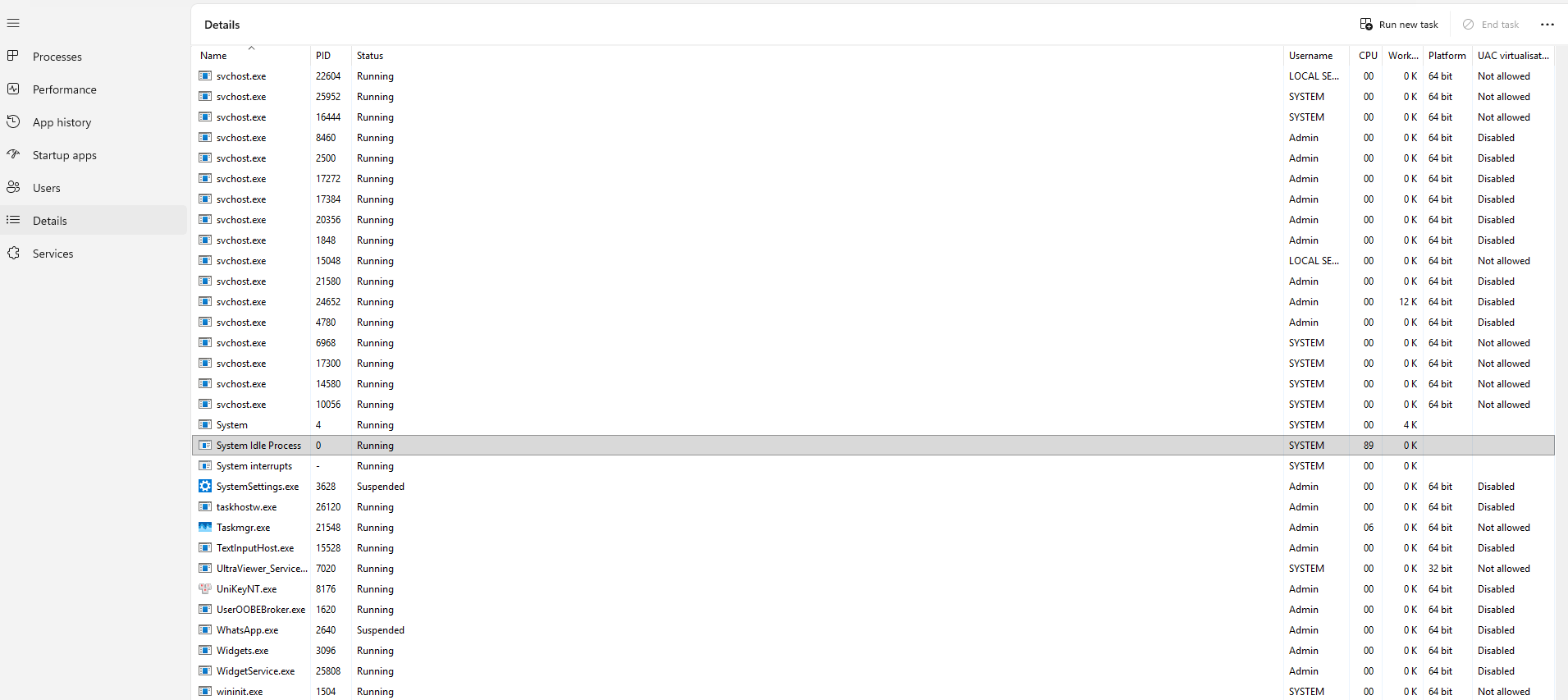 - Mở Task Manager → tab Details → tìm System Idle Process