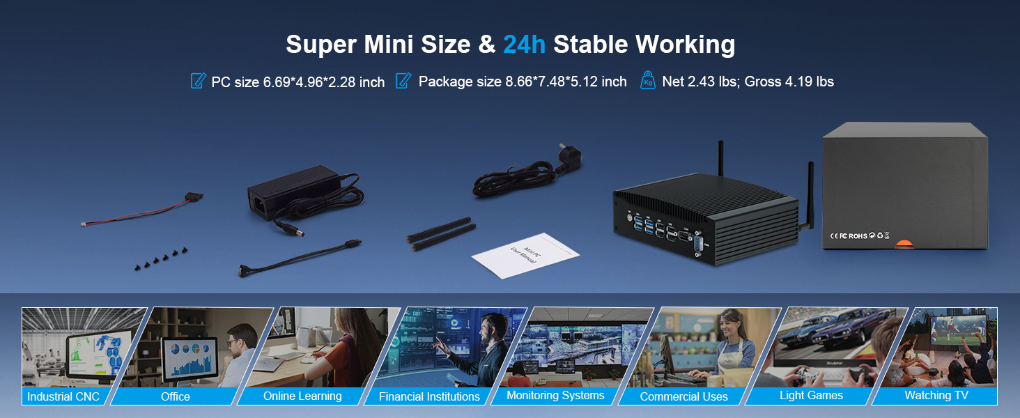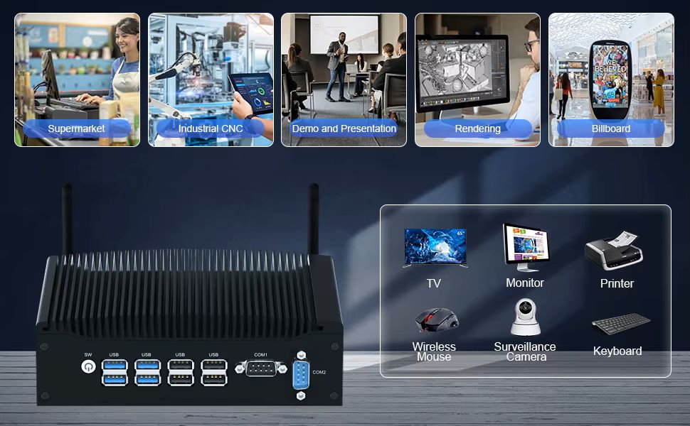 Đối với người dùng cá nhân hoặc văn phòng, mini PC này đáp ứng tốt vai trò một máy tính để bàn nhỏ gọn cho công việc hàng ngày, từ xử lý tài liệu, họp trực tuyến cho đến giải trí đa phương tiện tại gia. Bạn có thể đặt HYSTOU i5-8350U cạnh TV phòng khách như một media center không tiếng động, thưởng thức phim 4K mượt mà, hoặc dùng làm máy chủ lưu trữ dữ liệu gia đình. Tính linh hoạt về hệ điều hành (hỗ trợ cài đặt Windows 10/11, Linux, v.v.) giúp thiết bị dễ dàng thích ứng với mọi nhu cầu phần mềm của người dùng. Dù trong nhà máy sản xuất, tủ điều khiển, văn phòng hay ngôi nhà thông minh, chiếc máy tính nhúng này đều có thể được tin tưởng giao phó nhiệm vụ.