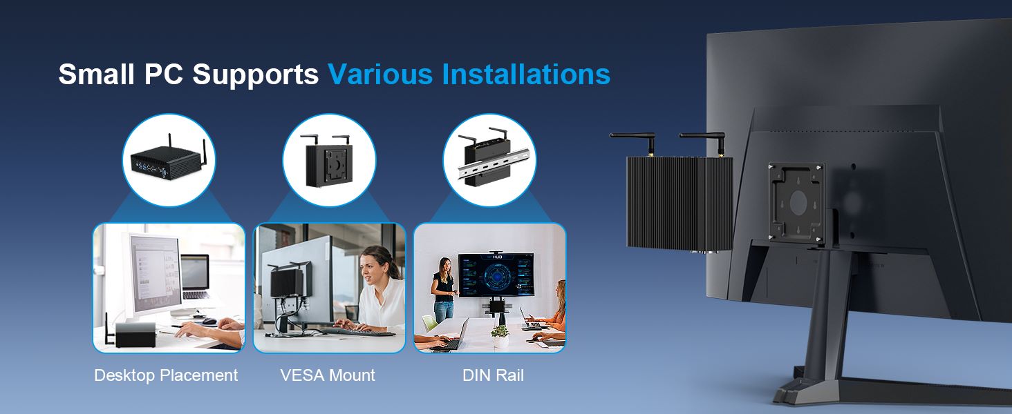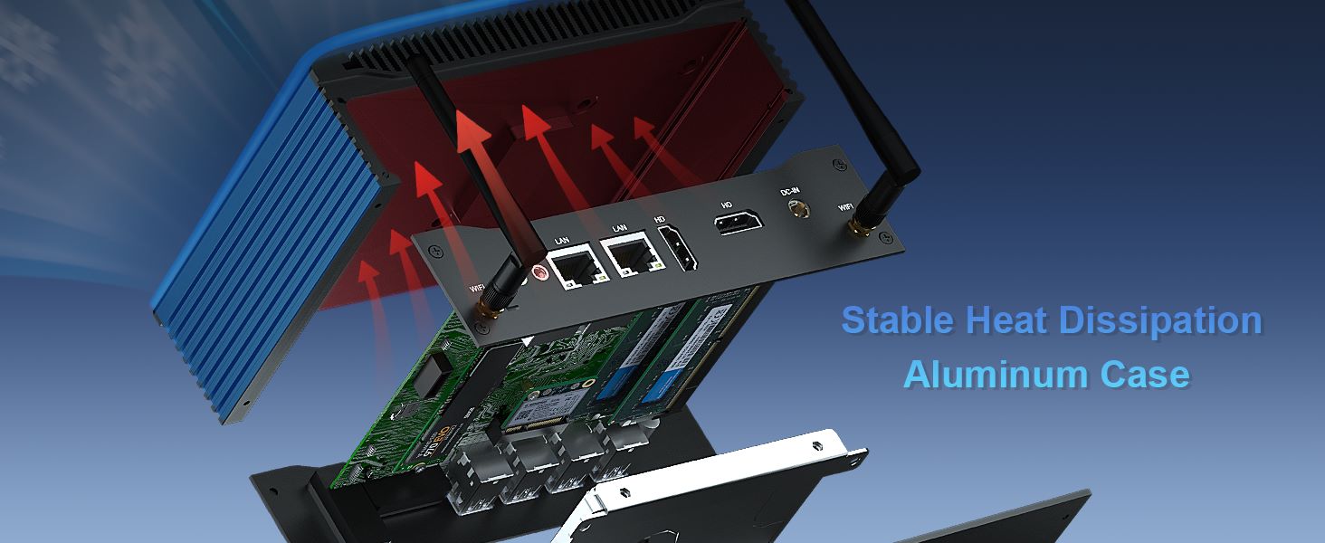Thiết kế không quạt còn giảm thiểu bụi bẩn xâm nhập, giúp máy tính hoạt động ổn định lâu dài mà ít phải bảo trì hơn. Với kích thước nhỏ gọn, chiếc mini PC này cũng dễ dàng lắp đặt trong không gian hẹp, từ tủ điều khiển công nghiệp cho đến gắn sau màn hình, tiết kiệm không gian cho người dùng. Không chỉ đẹp mắt và hiện đại, thiết kế vỏ nhôm nguyên khối còn đem lại độ cứng cáp, bảo vệ các linh kiện bên trong khỏi va đập và nhiễu điện từ trong môi trường công nghiệp khắc nghiệt.