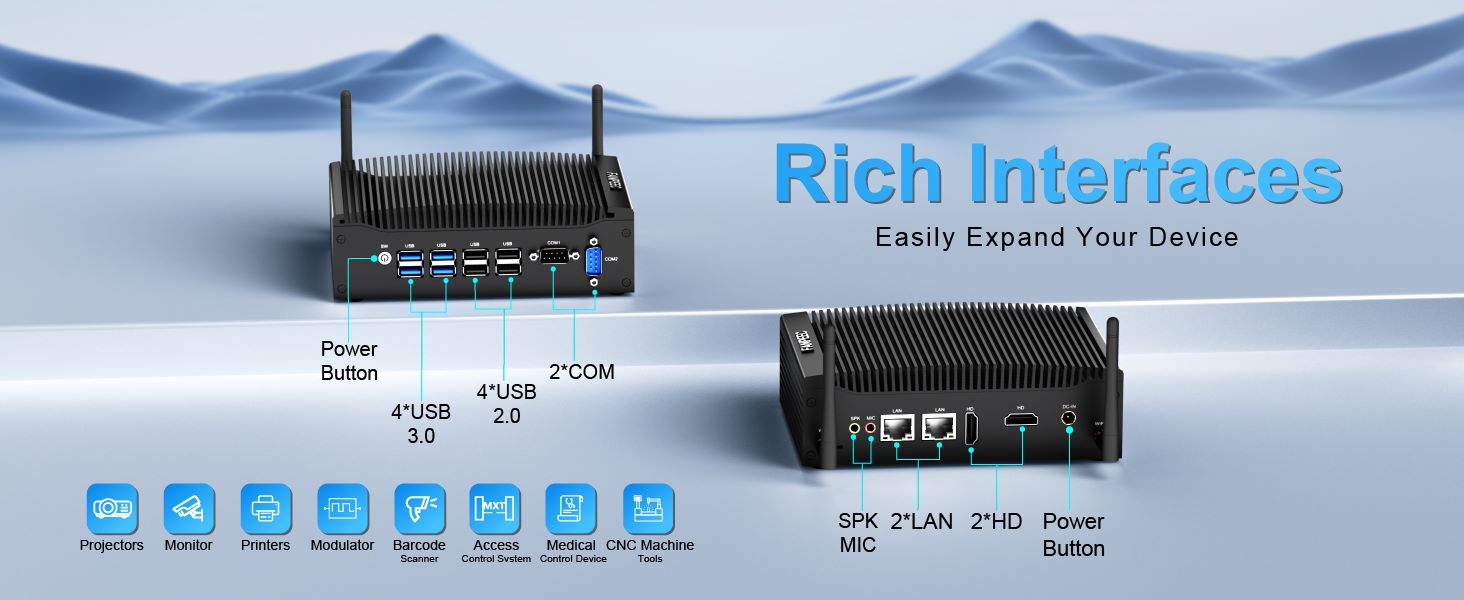 HYSTOU i5-8350U được trang bị nhiều cổng kết nối đa dạng ở cả mặt trước và sau, sẵn sàng kết nối với các thiết bị ngoại vi và hệ thống công nghiệp.