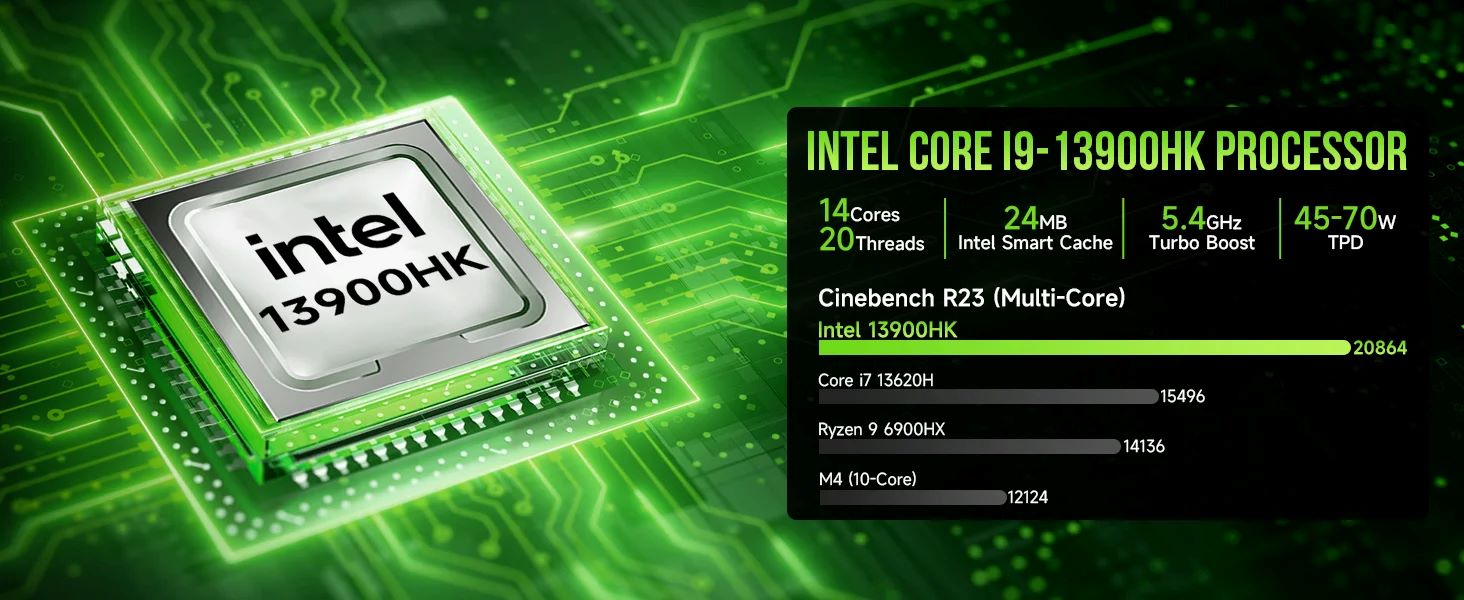 | CPU | Core i9 13900HK 14C/20T Max 5.4Ghz CPU Mark |