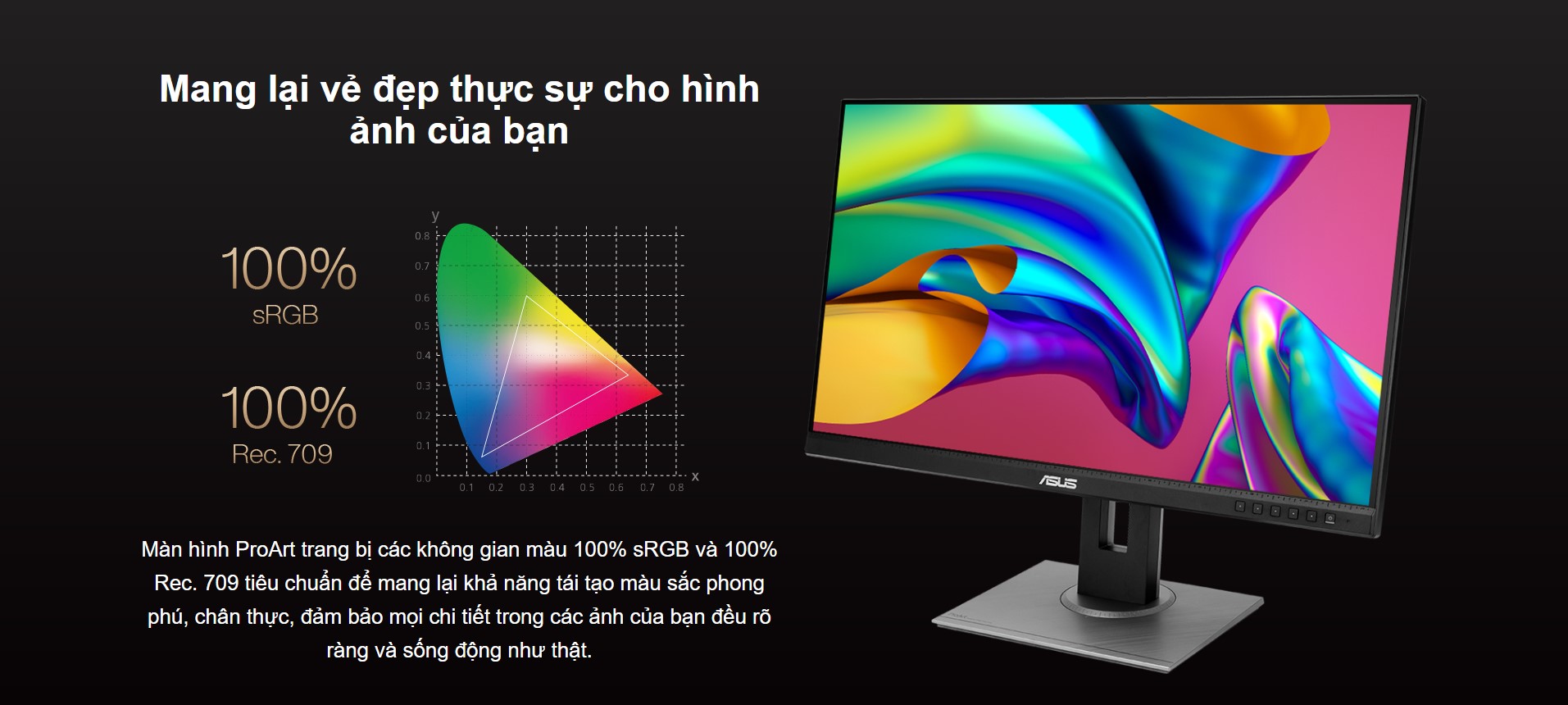 Bên cạnh đó, màn hình này cung cấp độ phủ màu theo tiêu chuẩn công nghiệp với 100% sRGB và 100% Rec. 709. Việc tập trung vào hai dải màu này không phải là một hạn chế, mà là một sự lựa chọn chiến lược phù hợp với nhu cầu của đại đa số các chuyên gia sáng tạo. Trong khi các màn hình cao cấp hơn có thể cung cấp dải màu rộng hơn như DCI-P3 hay Adobe RGB, đại đa số các tác vụ thiết kế web, nhiếp ảnh kỹ thuật số và sản xuất video HD vẫn hoạt động chủ yếu trong không gian màu sRGB/Rec. 709. Bằng cách đảm bảo độ chính xác hoàn hảo trong các dải màu này, PA278QEV phục vụ hiệu quả cho đối tượng mục tiêu của mình, giúp người dùng không phải trả thêm tiền cho khả năng tái tạo màu sắc mà họ có thể không cần đến, trong khi vẫn đảm bảo sự tin cậy tuyệt đối cho công việc của họ. Đây là một điểm thuyết phục mạnh mẽ về giá trị mà sản phẩm mang lại.