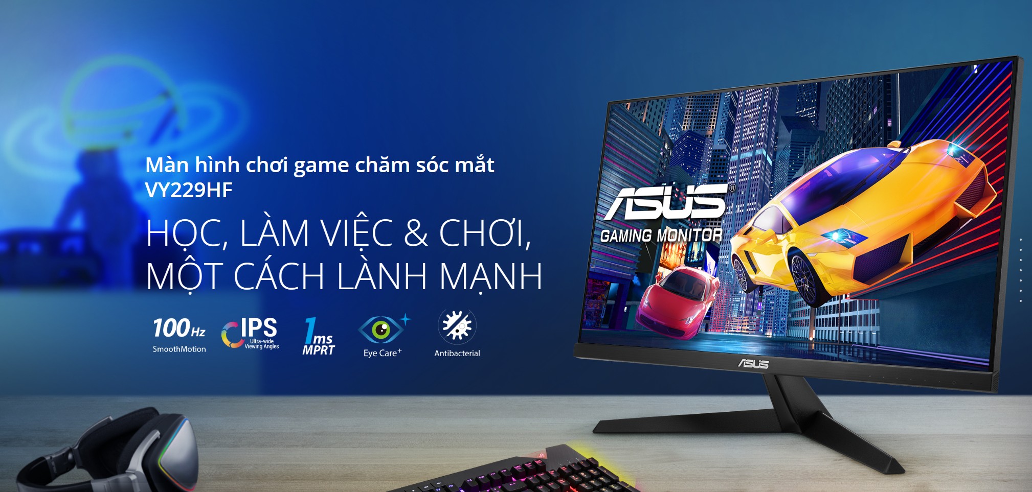 Màn hình ASUS VY229HF 21.45 inch (thường được gọi là màn hình 22 inch) được thiết kế để vượt xa các tiêu chuẩn cơ bản của màn hình văn phòng giá rẻ. Thay vì chỉ tập trung vào mức giá tối thiểu, ASUS đã định vị VY229HF là "Màn hình Chăm sóc Sức khỏe Toàn diện", tích hợp một gói công nghệ bảo vệ mắt và vệ sinh độc quyền, hiếm thấy trong phân khúc này. Với kích thước lý tưởng cho không gian làm việc vừa và nhỏ, cùng tấm nền IPS FHD sắc nét và tốc độ 75Hz mượt mà , VY229HF đại diện cho sự chuyển đổi giá trị, mang lại lợi ích sức khỏe tối đa trên mỗi đồng chi tiêu cho người dùng cá nhân, sinh viên học trực tuyến, và nhân viên văn phòng phải làm việc nhiều giờ liên tục.