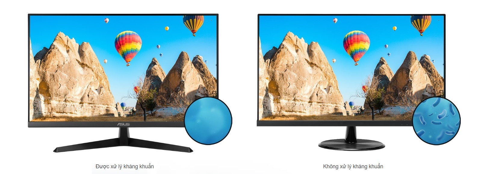 Màn hình ASUS VY229HF là một trong số ít sản phẩm trong phân khúc được trang bị xử lý kháng khuẩn lâu dài độc quyền trên viền màn hình và phím nóng. Đây là một tính năng tạo ra lợi thế cạnh tranh gần như tuyệt đối, đặc biệt quan trọng trong các môi trường công cộng hoặc gia đình sử dụng chung thiết bị.