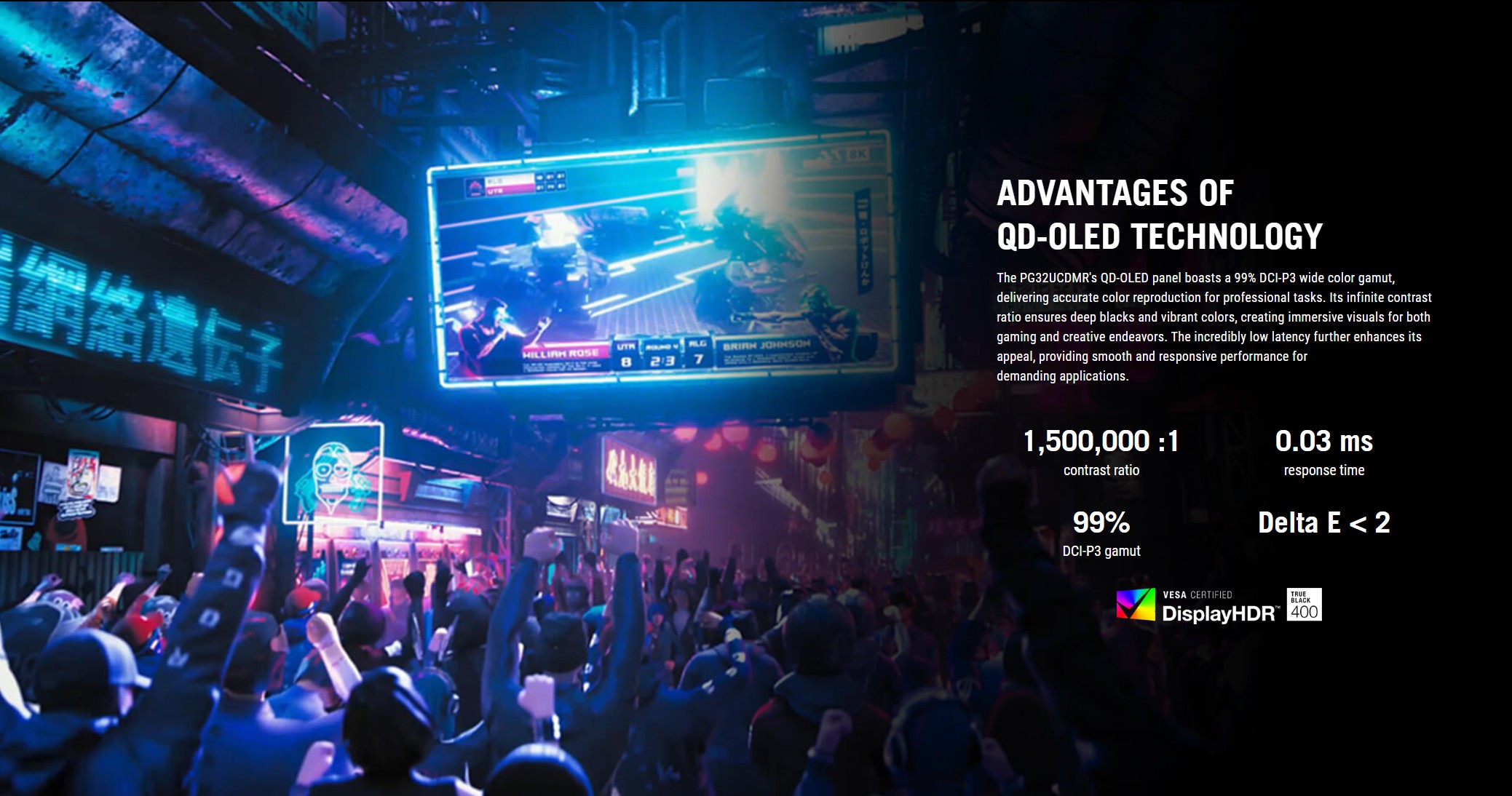 PG32UCDMR sử dụng tấm nền OLED tiên tiến với các điểm ảnh tự phát sáng độc lập, loại bỏ hoàn toàn nhu cầu về đèn nền truyền thống. Điều này cho phép màn hình đạt được độ tương phản gần như vô hạn, nơi các vùng tối được hiển thị bằng màu đen tuyệt đối do các pixel được tắt hoàn toàn.