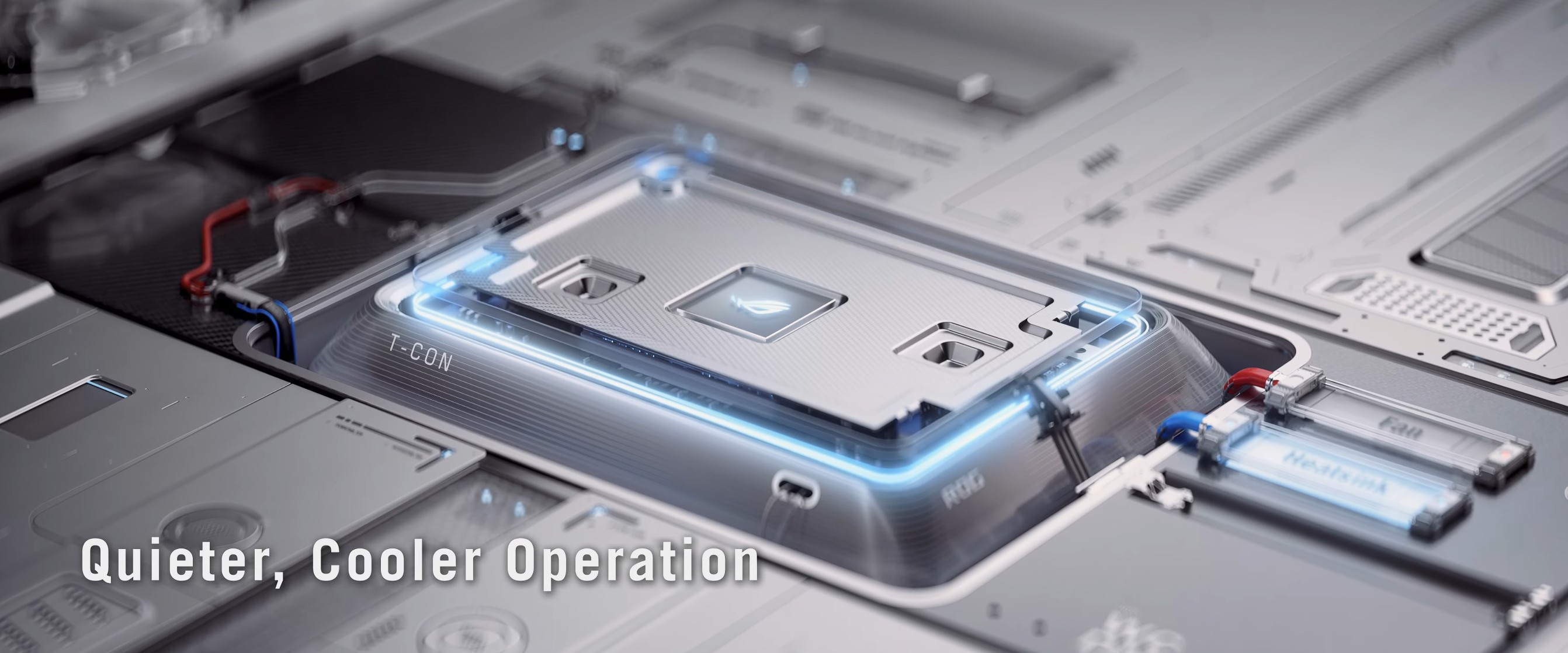 Một trong những rào cản lớn nhất đối với màn hình OLED chính là nhiệt độ và nguy cơ burn-in, nhưng ASUS đã giải quyết bài toán này một cách triệt để trên PG39WCDM. Màn hình được trang bị hệ thống tản nhiệt tùy chỉnh (custom heatsink) với bố cục luồng không khí được tối ưu hóa, giúp dẫn nhiệt hiệu quả ra khỏi tấm nền mà không cần sử dụng quạt tản nhiệt gây tiếng ồn.