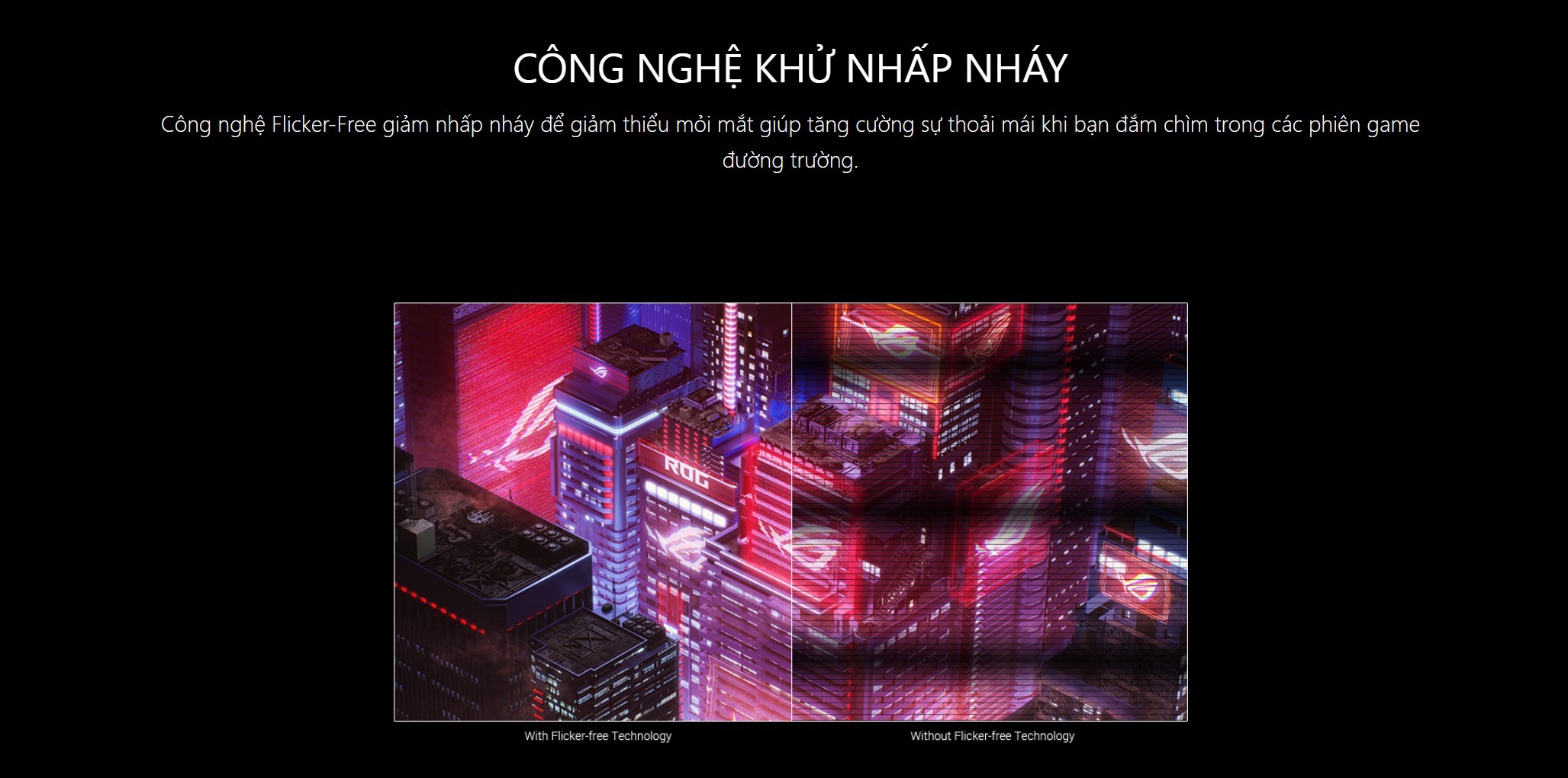 Sử dụng một màn hình có độ sáng cao và kích thước lớn như PG35VQ đòi hỏi những giải pháp bảo vệ thị giác hiệu quả. ASUS đã trang bị công nghệ Ultra-Low Blue Light giúp giảm lượng ánh sáng xanh có hại phát ra từ tấm nền mà không làm sai lệch quá nhiều màu sắc nguyên bản.