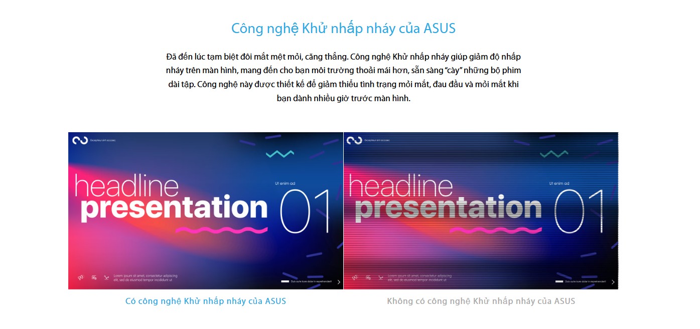 Flicker-Free (Khử nhấp nháy): Giảm thiểu hiện tượng nhấp nháy của màn hình, ngăn ngừa tình trạng mỏi mắt và đau đầu.