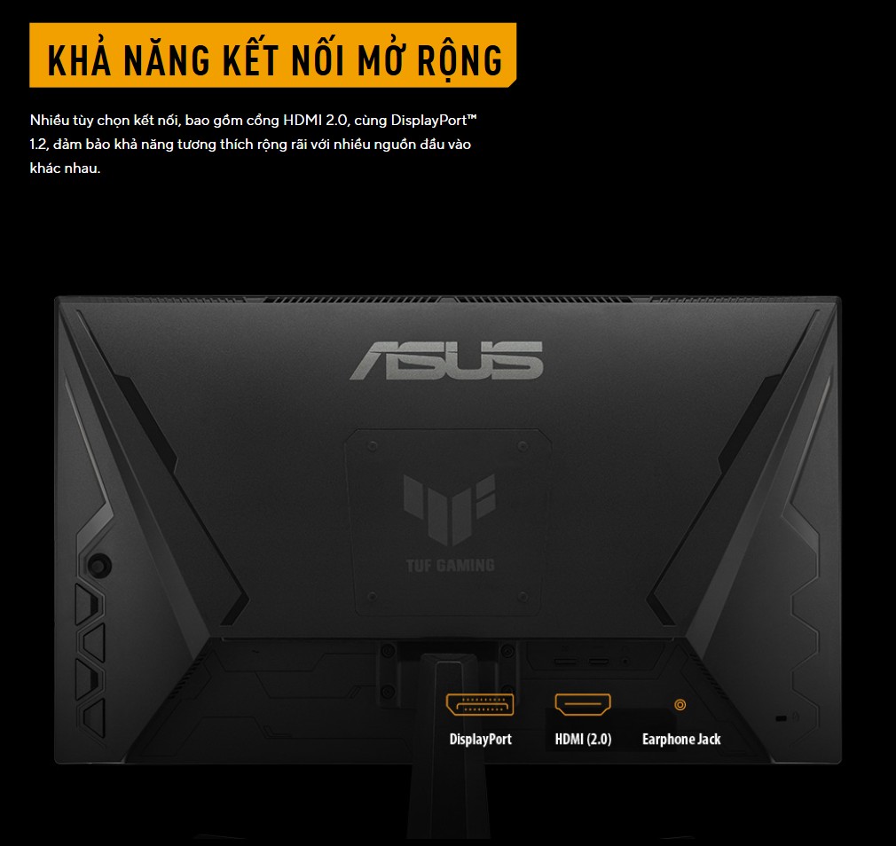 Sở hữu kích thước 27 inch, ASUS TUF Gaming VG279QE5A mang lại không gian hiển thị rộng rãi, giúp game thủ dễ dàng bao quát bản đồ và quan sát kẻ thù từ xa. Với độ phân giải Full HD, màn hình đảm bảo hình ảnh rõ ràng mà không gây quá tải cho hệ thống card đồ họa, giúp duy trì mức FPS cao ổn định – yếu tố sống còn trong các tựa game Esport.