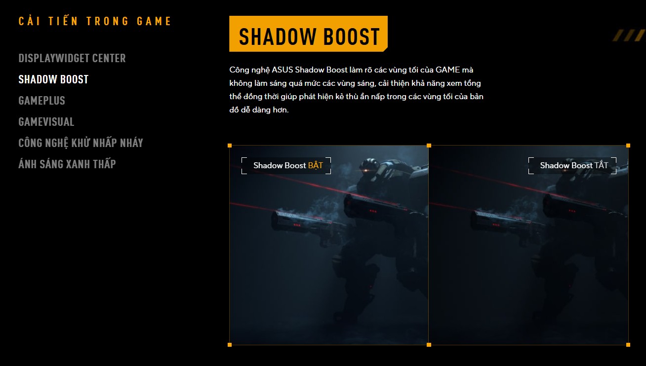 Trong những tựa game kinh dị hoặc các bản đồ tối của game hành động, kẻ thù thường ẩn nấp trong các góc khuất. Công nghệ Shadow Boost của ASUS sẽ tự động làm sáng những vùng tối này mà không làm cháy sáng các vùng sáng khác. Điều này không chỉ cải thiện tầm nhìn tổng thể mà còn giúp bạn phát hiện kẻ địch sớm hơn, giành lợi thế chủ động trong mọi cuộc phục kích.