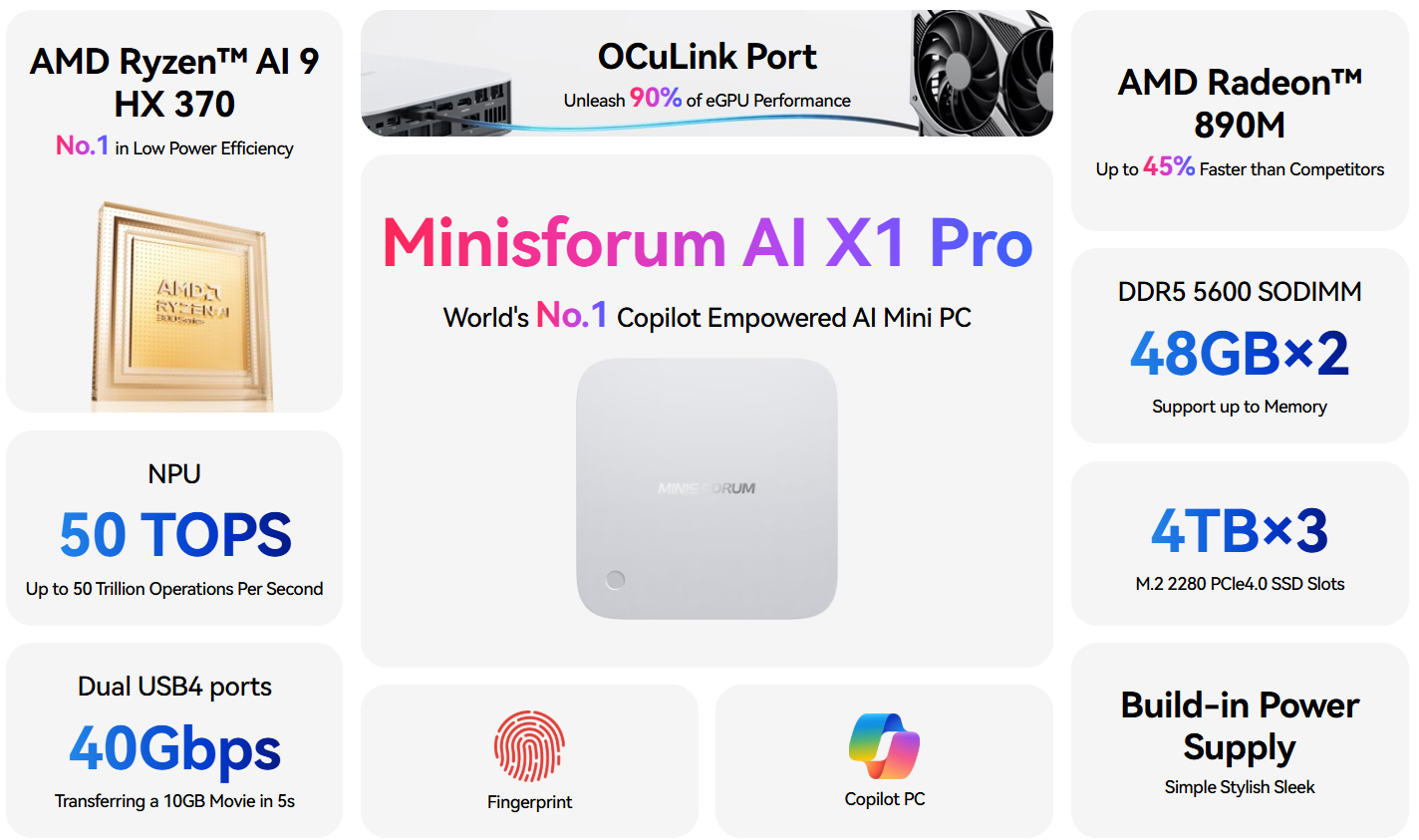 Minisforum AI X1 Pro là một kiệt tác công nghệ trong phân khúc mini PC, mang đến sự kết hợp hoàn hảo giữa hiệu suất vượt trội, tính năng tiên tiến và thiết kế nhỏ gọn đầy tinh tế.