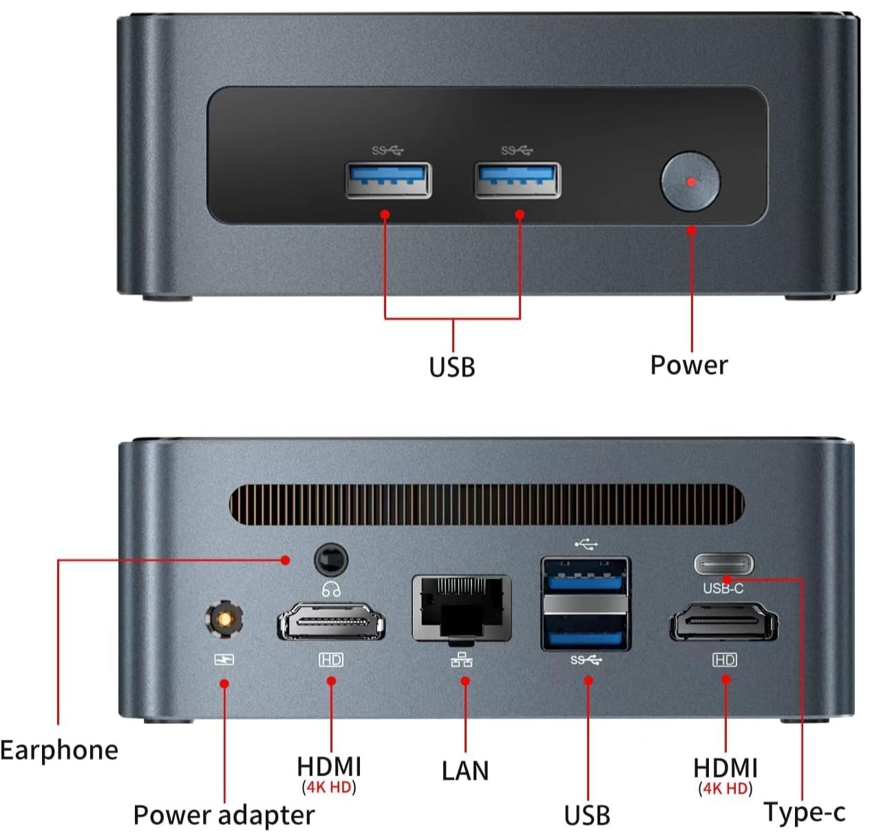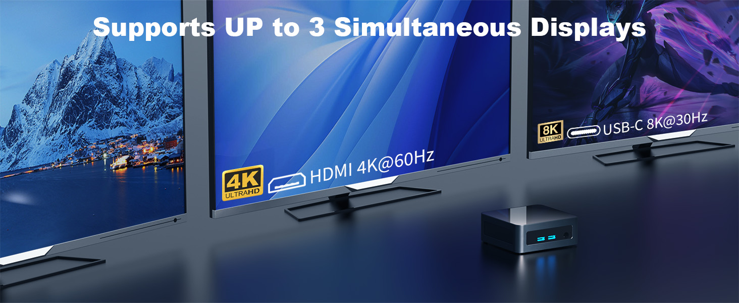 Một điểm nhấn của Mini PC Ask Hand MN355 là khả năng xuất hình ảnh 4K@60Hz trên ba màn hình đồng thời thông qua hai cổng HDMI và một cổng USB-C. Tính năng này rất hữu ích cho các lập trình viên, nhà thiết kế đồ họa, hoặc những người cần làm việc đa nhiệm với nhiều màn hình. Nó mang lại trải nghiệm hình ảnh sắc nét, lý tưởng cho cả công việc sáng tạo và giải trí.