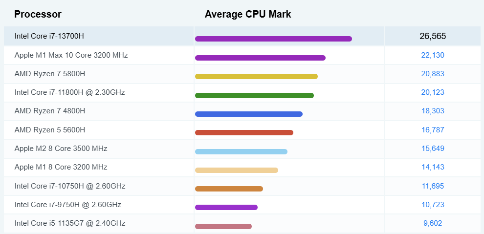 | CPU | Intel® Core™ i7-13700H 5.00GHz 14C/20T CPU Mark |