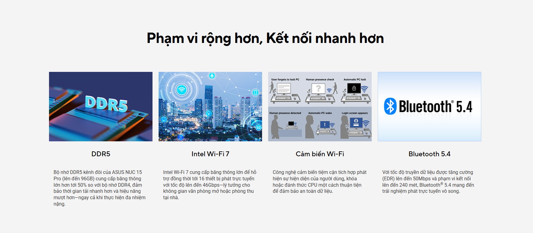 ASUS NUC 15 Pro là một trong những dòng Mini PC tiên phong trang bị công nghệ kết nối không dây mạnh mẽ nhất hiện nay.