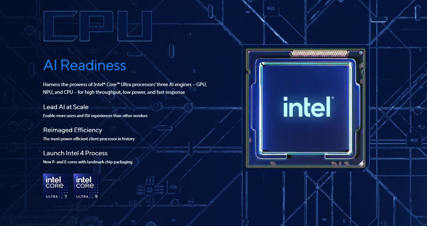 Tận dụng sức mạnh của bộ vi xử lý Intel® Core™ Ultra, tích hợp AI – GPU, NPU và CPU – để mang lại hiệu suất cao, tiêu thụ điện năng thấp và phản hồi nhanh chóng.