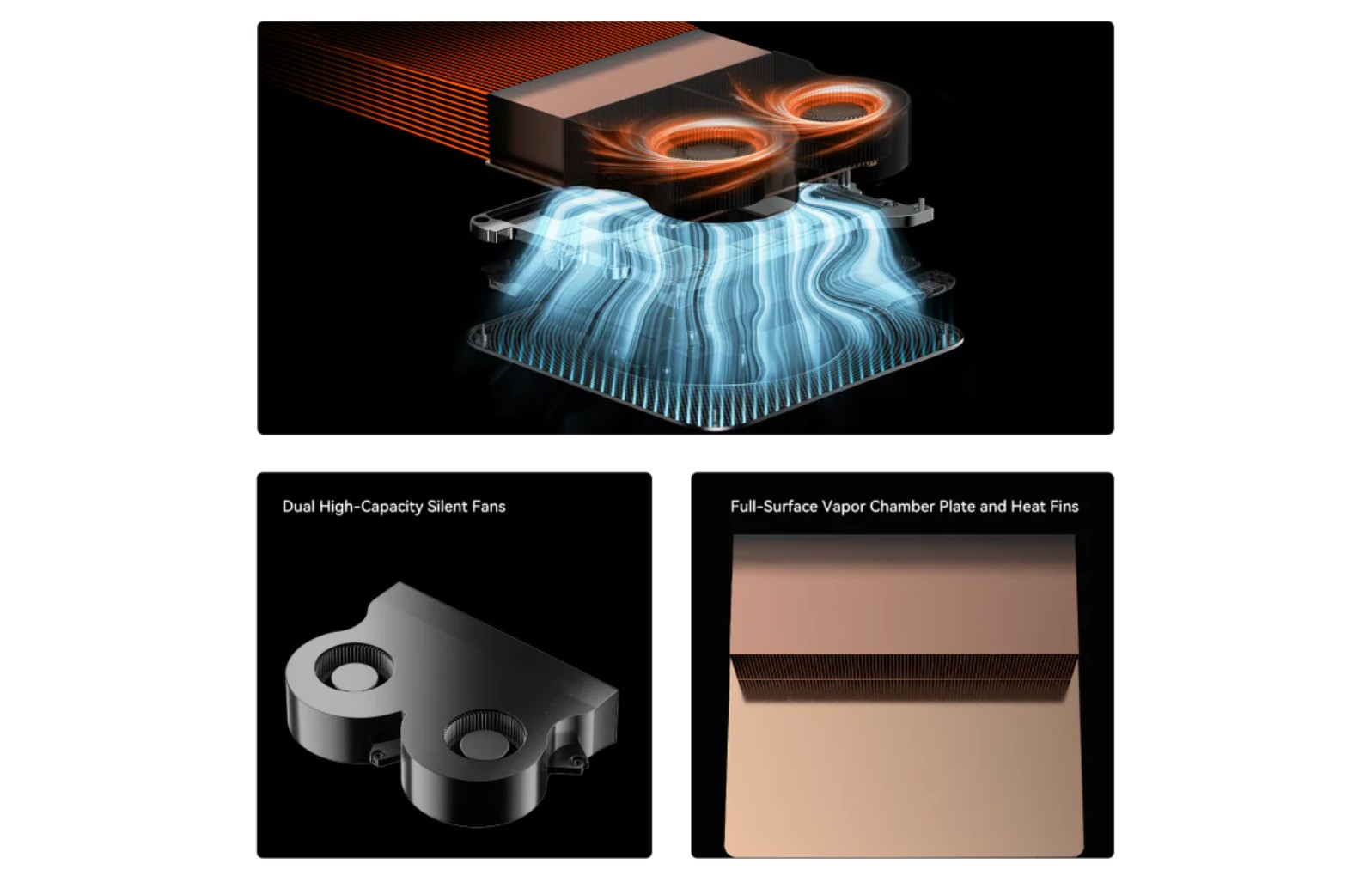 Thiết kế: Hệ thống sử dụng hai quạt im lặng dung lượng cao, kết hợp với một buồng hơi (vapor chamber) trên toàn bộ bề mặt và cánh tản nhiệt rộng 137mm.