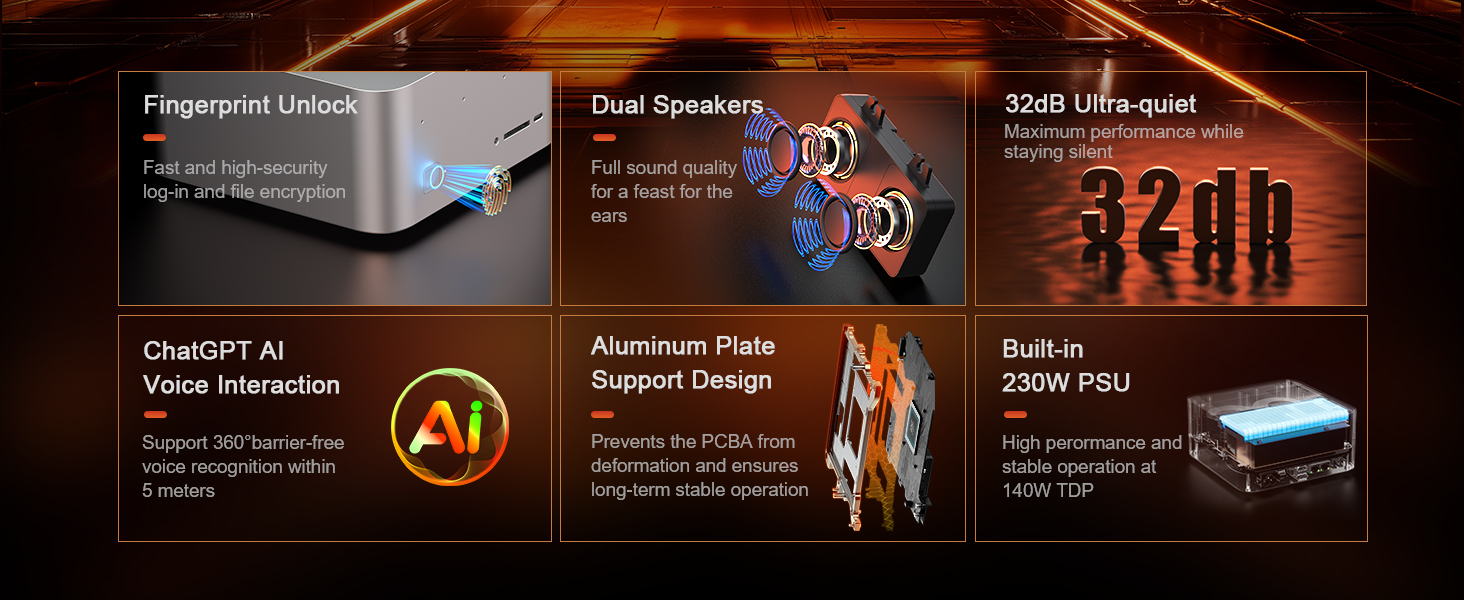Độ ồn thấp: Ngay cả khi hoạt động ở công suất cao, GTR9 Pro vẫn duy trì độ ồn cực thấp, chỉ ở mức 32dB. Điều này làm cho nó trở thành một lựa chọn lý tưởng cho các môi trường yêu cầu sự yên tĩnh tuyệt đối như phòng thu âm, văn phòng cá nhân, hay phòng khách (HTPC).