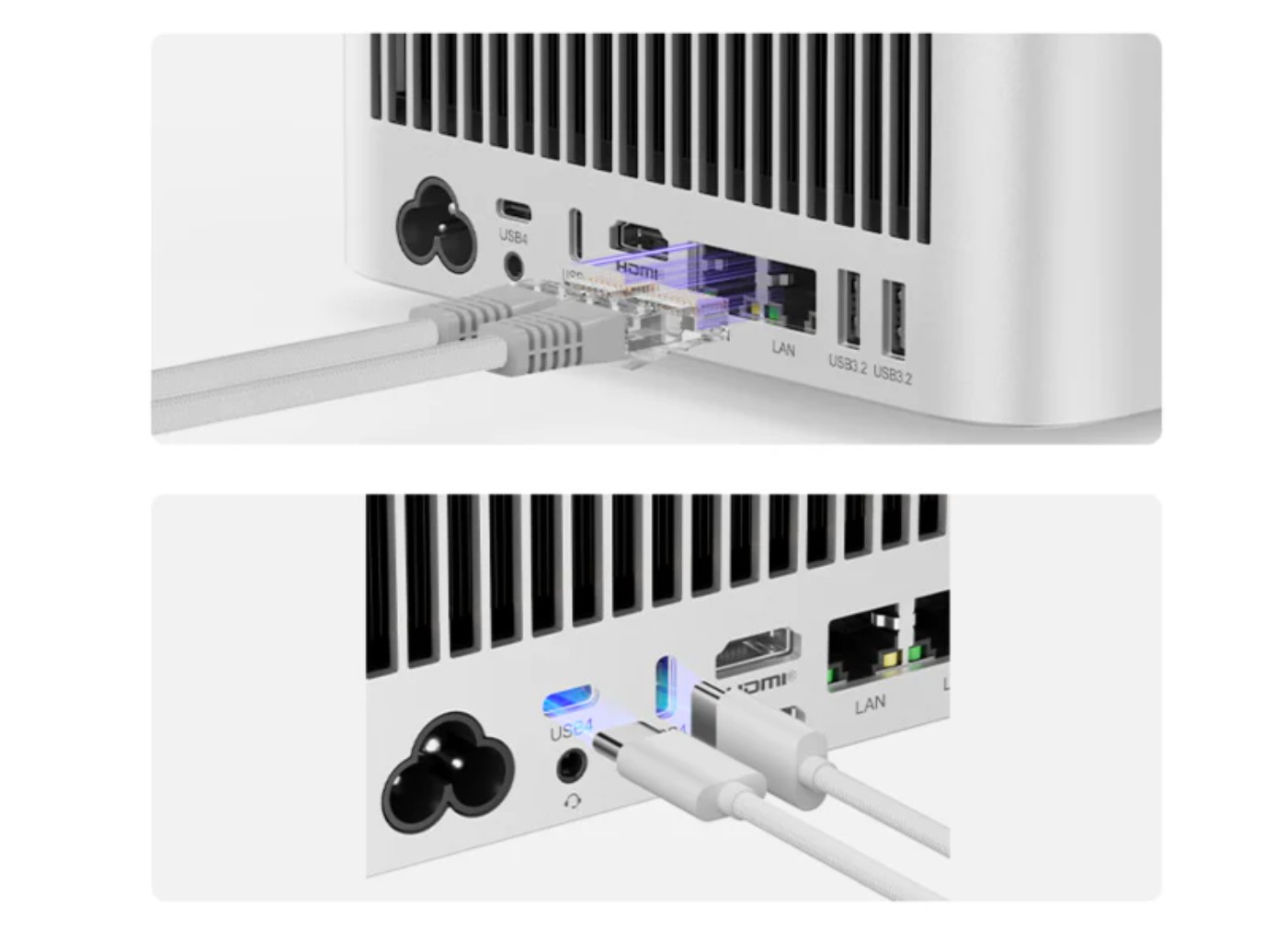 Hỗ trợ 4 Màn hình 8K: GTR9 Pro có khả năng xuất hình lên đến Bốn màn hình 8K đồng thời, thông qua sự kết hợp của 2 cổng USB4 (40Gbps/DP 1.4), 1 cổng HDMI 2.1 (8K@60Hz) và 1 cổng DisplayPort 2.1 (8K@60Hz).