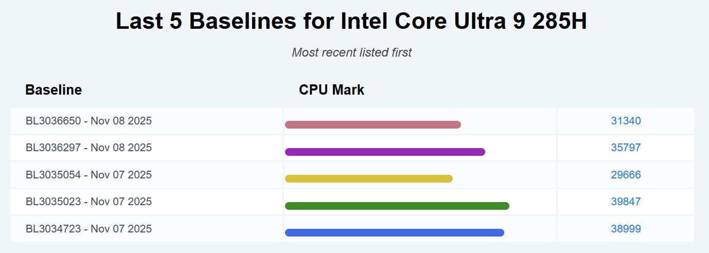 Các bài kiểm tra benchmark tổng hợp xác nhận vị thế của Ultra 9 285H là một bộ xử lý di động hàng đầu, cạnh tranh trực tiếp với các CPU máy tính để bàn cao cấp.