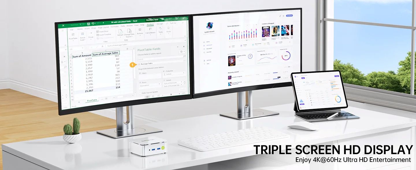 Với kích thước siêu nhỏ gọn (103 x 98 x 42 mm) và khả năng gắn VESA , GMK G10 dễ dàng được lắp đặt phía sau màn hình, tạo ra một không gian làm việc tối giản và hiệu quả. Máy cung cấp hiệu suất đáng tin cậy cho: