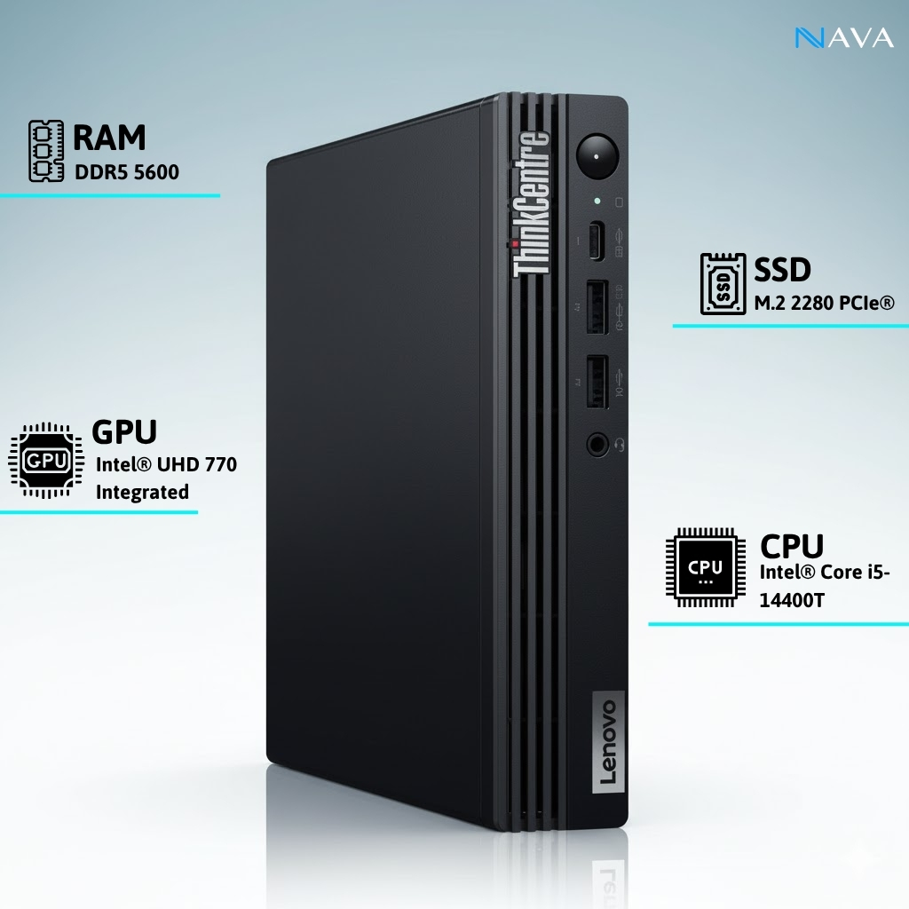 ThinkCentre M70q Gen 5 Tiny là sự tái khẳng định vị thế của máy tính để bàn thu nhỏ trong môi trường doanh nghiệp. Bằng cách tích hợp hiệu năng cấp độ máy trạm (Intel Core 14th Gen, DDR5-5600MHz) vào khung máy 1-Lít, Lenovo đã tạo ra một thiết bị không chỉ tiết kiệm không gian mà còn nâng cao năng suất làm việc.