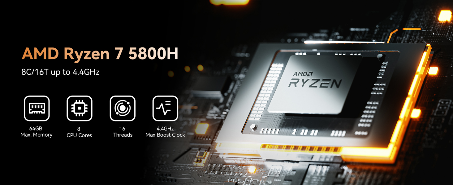 Minisforum UM580D là một chiếc Mini PC mạnh mẽ, được trang bị bộ vi xử lý AMD Ryzen 7 5800H với 8 nhân và 16 luồng, đạt tốc độ xung nhịp tối đa lên đến 4.4 GHz.