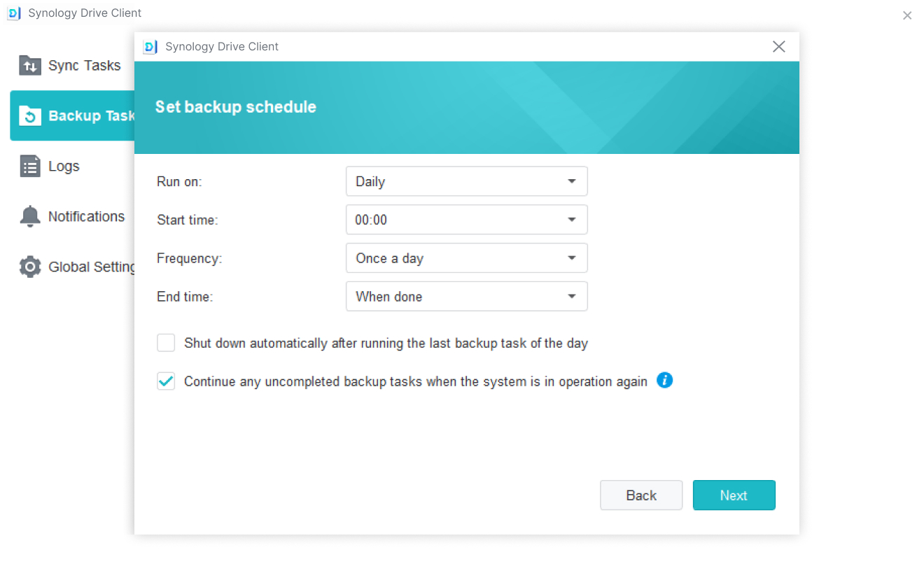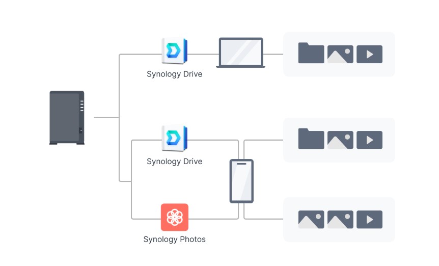 Synology Drive Client: Dùng để sao lưu và đồng bộ hóa dữ liệu từ các thiết bị đầu cuối (PC, Mac) lên NAS, cung cấp khả năng lưu trữ phiên bản tệp để phục hồi nhanh chóng.