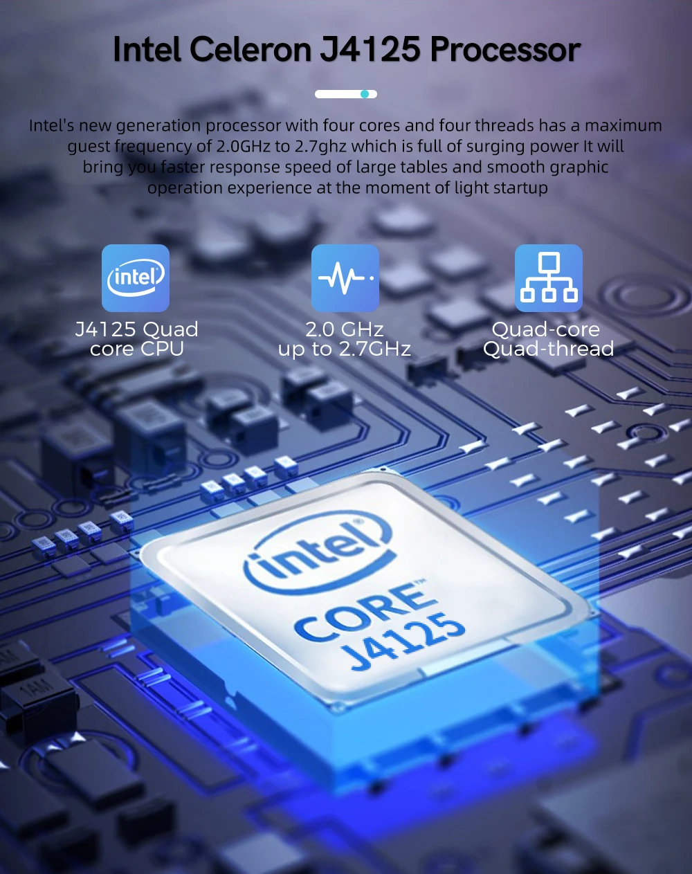 | CPU | Intel Celeron J4125 4C/4T tối đa 2.7Ghz CPU Mark |