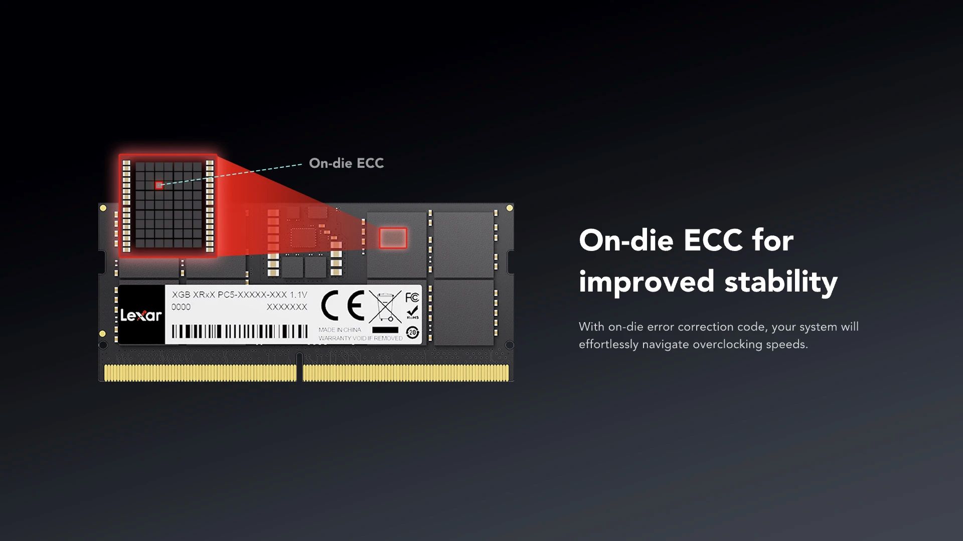 Song song đó là tính năng On-die ECC. Khi xử lý dữ liệu ở tốc độ cao hơn, nguy cơ xảy ra lỗi bit ngẫu nhiên cũng tăng lên. On-die ECC giải quyết vấn đề này bằng cách cho phép các chip nhớ tự sửa lỗi bit đơn trước khi dữ liệu được gửi đến CPU. Mặc dù tính năng này khác với ECC đầy đủ của RAM máy chủ (server), nó vẫn làm tăng đáng kể độ tin cậy của dữ liệu. Đối với người dùng làm việc với các tệp lớn, chẳng hạn như render video 4K/8K, hay tính toán mô phỏng, tính năng On-die ECC giúp giảm nguy cơ mất dữ liệu hoặc sự cố hệ thống bất ngờ (crash), đảm bảo tiến độ công việc liên tục.