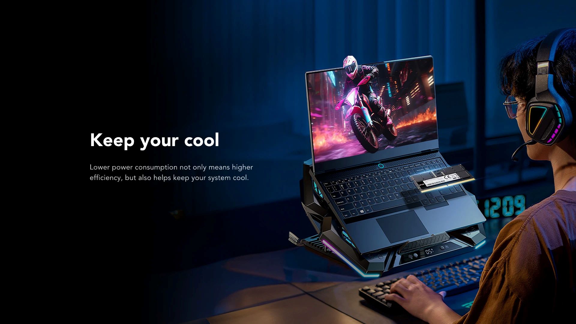 Một cải tiến quan trọng của DDR5 là việc giảm điện áp hoạt động. RAM Lexar DDR5 4800 SODIMM vận hành ở điện áp cực thấp, chỉ 1.1V. Mức điện áp này thấp hơn 0.1V so với tiêu chuẩn 1.2V của DDR4, dẫn đến việc giảm tổng điện năng tiêu thụ. Lợi ích thực tế là sự cải thiện đáng kể về thời lượng pin của laptop và giảm lượng nhiệt sinh ra trong quá trình hoạt động, điều tối quan trọng đối với các thiết bị di động có giới hạn về tản nhiệt.