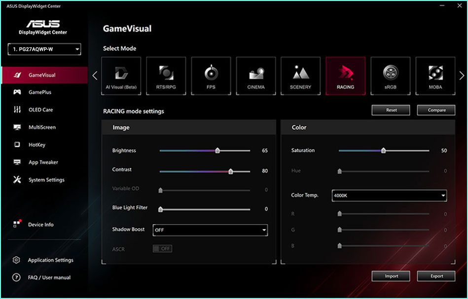 Để tối ưu hóa trải nghiệm sử dụng, ASUS cung cấp phần mềm DisplayWidget Center, cho phép người dùng điều chỉnh mọi thiết lập của PG27UCDM trực tiếp bằng chuột ngay trên giao diện Windows.